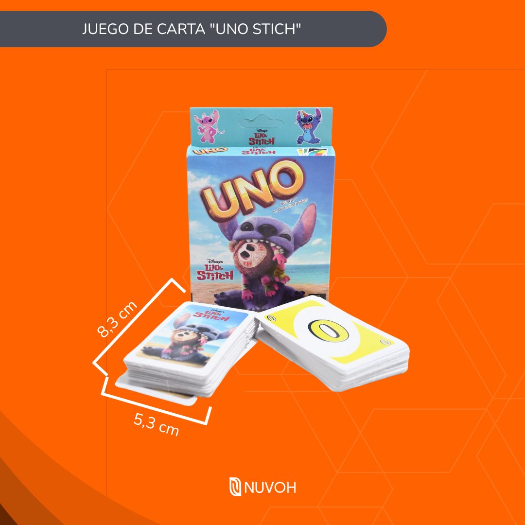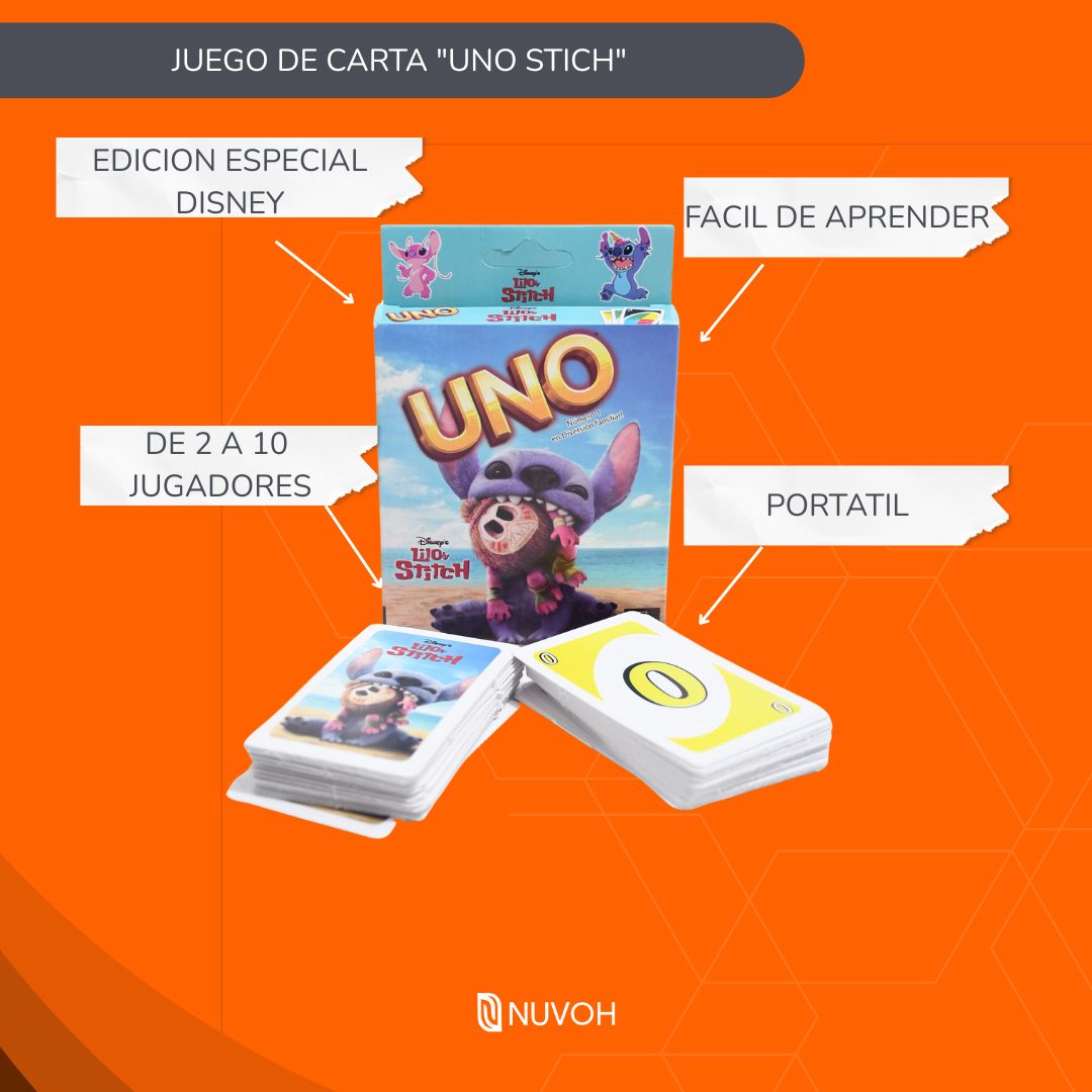 Contenido: Incluye un mazo completo de cartas UNO con diseño de Lilo & Stitch e instrucciones de juego.