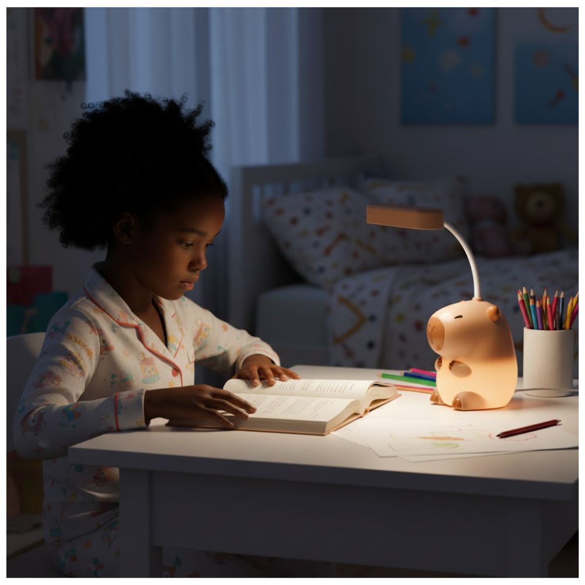 Ilumina tu espacio de trabajo con la Lampara de Mini Capibara Nocturna LED. Esta cautivadora lámpara no solo ilumina tu escritorio, sino que también agrega un toque celestial a tu entorno, creando un ambiente propicio para la creatividad, perfecto para los niños que le tienen miedo a la oscuridad, es el compañero que les permitirá dormir sin problemas.